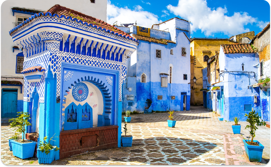 - Экскурсия в Мечеть Хасана Второго. Переезд в Рабат (1,5 ч), экскурсия, обед. Переезд в Шефшауэн (4 ч). Ночь в Шефшауэне