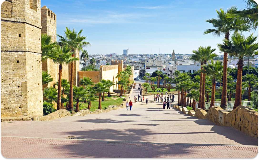 В Рабате нас ждёт интересная экскурсия. Это не просто столица Марокко, но и место, где живет Король! Город очень красивый и зелёный. Первое, что мы посмотрим, это касба Удайяс — там такие уютные бело-голубые улочки и сад в андалузском стиле, где всегда пахнет цветами.