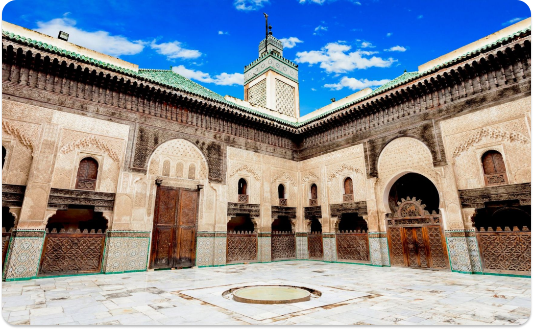 Завтракайте в отеле, а потом отправимся в удивительное путешествие по Фесу - это не просто город, это легенда Марокко! Погуляем по старой медине, где даже сейчас ослики - основной вид транспорта. Мимо уютных улочек и лавочек ремесленников дойдем до университета Карауин, который, кстати, старейший в мире! Заглянем к знаменитым кожевникам Феса. Там можно увидеть, как по старинным рецептам создают настоящие шедевры из кожи.