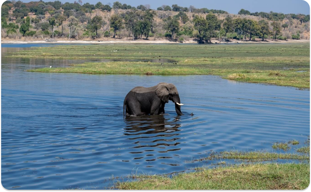 Сегодня мы отправляемся в нашу четвертую страну - Ботсвану. Начнется наше знакомство с речной прогулки, где мы увидим слонов и бегемотов. А после обеда отправимся в Национальный парк Чобе.